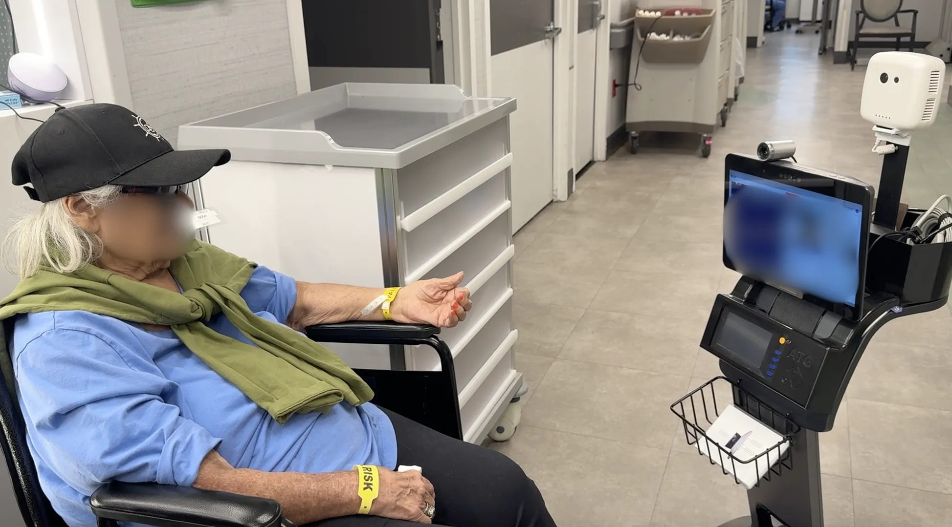 Robot goes room-to-room and detects patient walking in hallway